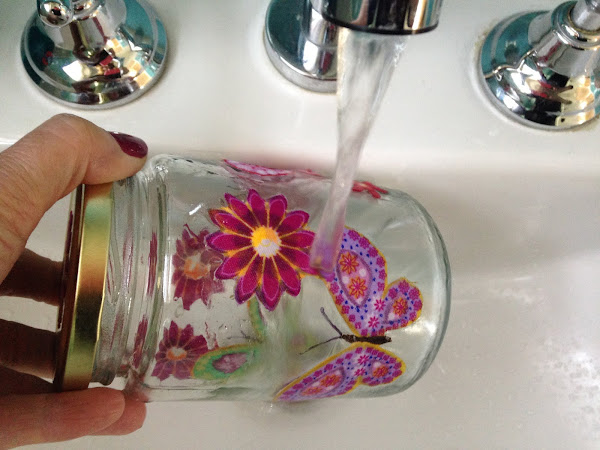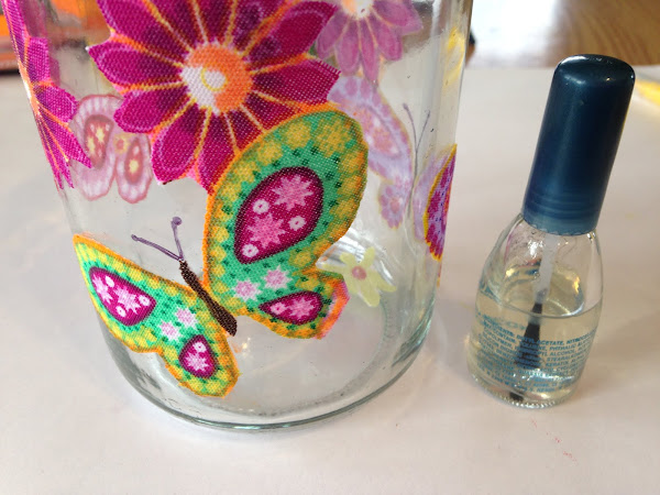 Una vez que está todo delineado, pintado y bien seco hay que proceder a impermeabilizar el frasco para que tenga uso. Para ello en ésta ocasión usé esmalte de uñas incoloro, lo que llamamos brillo.