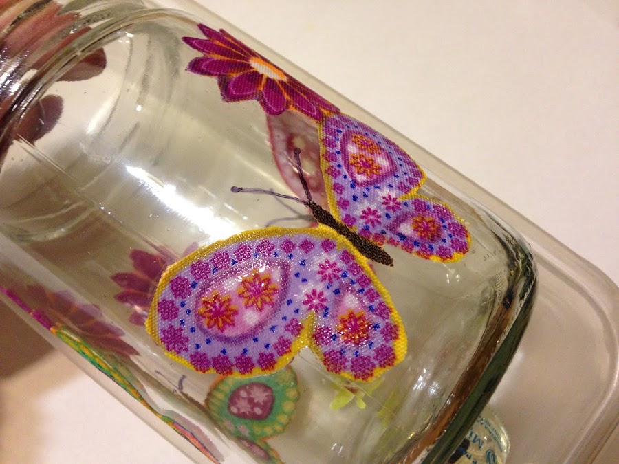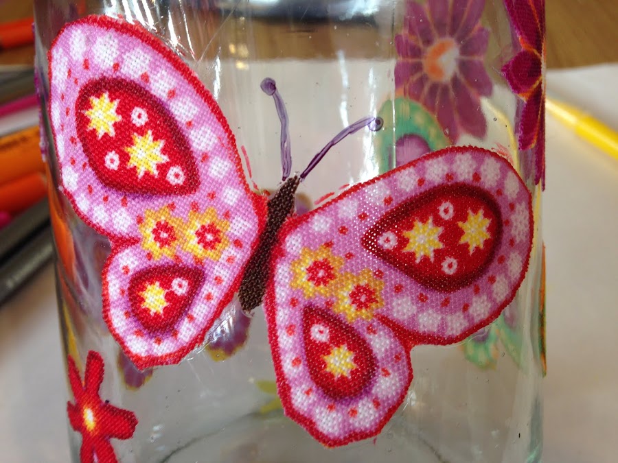 Acá se puede ver como queda bien delineado. Con un marcador al solvente o marcador llamado permanente le realicé las antenitas a la mariposa.