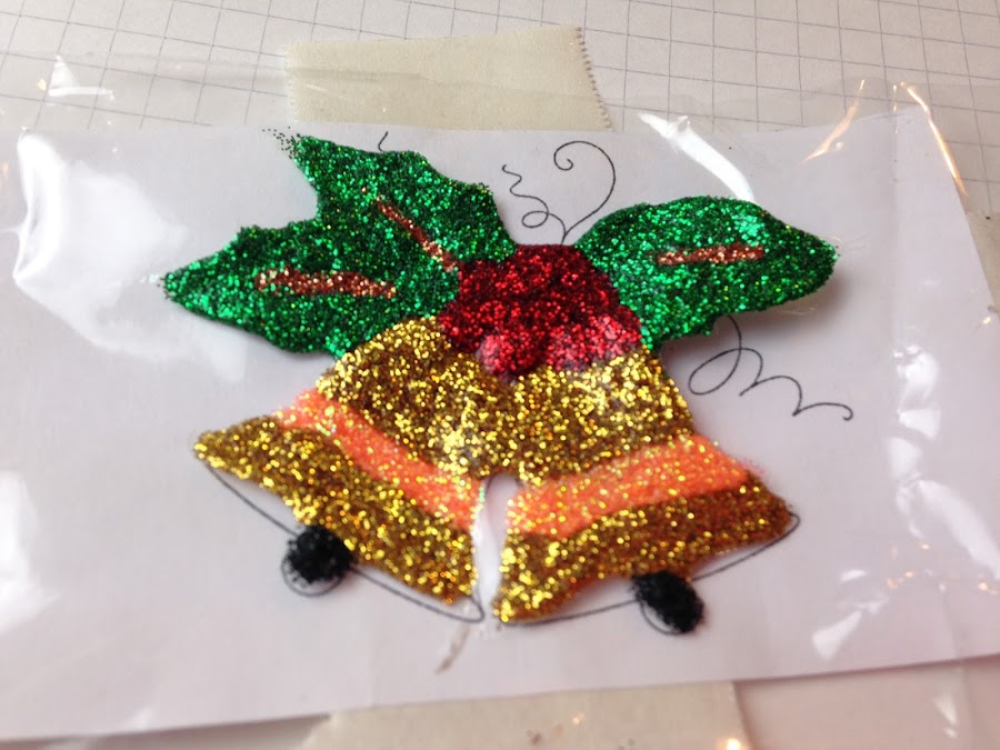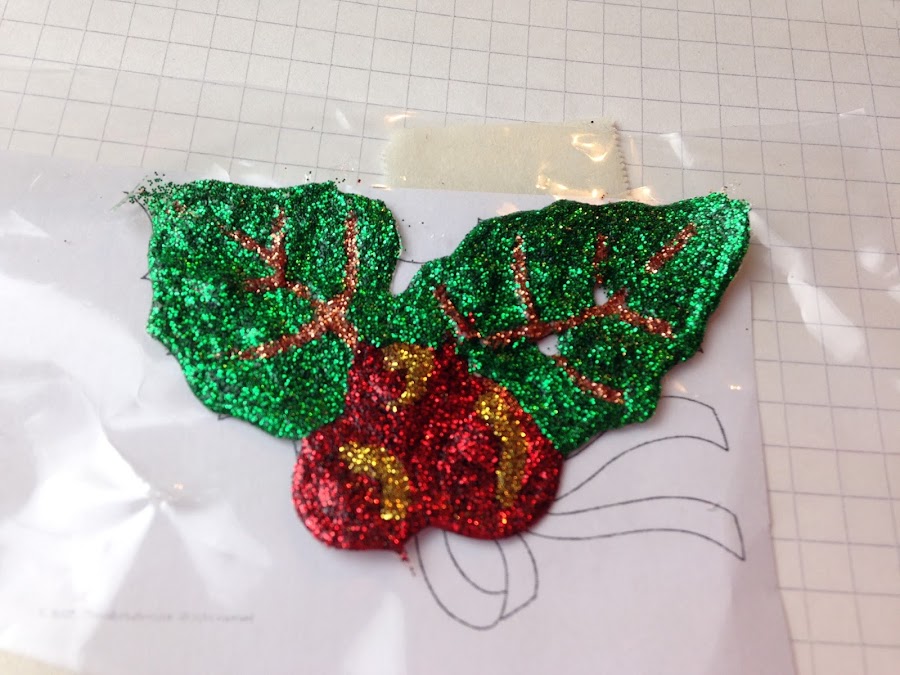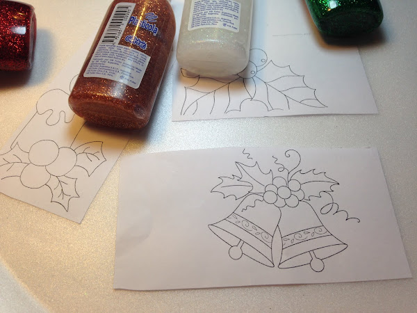 Contornear la figura con la cola vinílica con glitter cubriendo todo el dibujo. Así con todos los dibujos elegidos. Dejar secar en una superficie plana por lo menos 24 hs dependiendo de la humedad del ambiente.