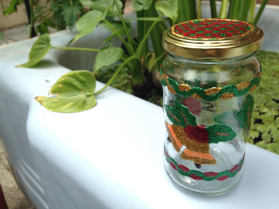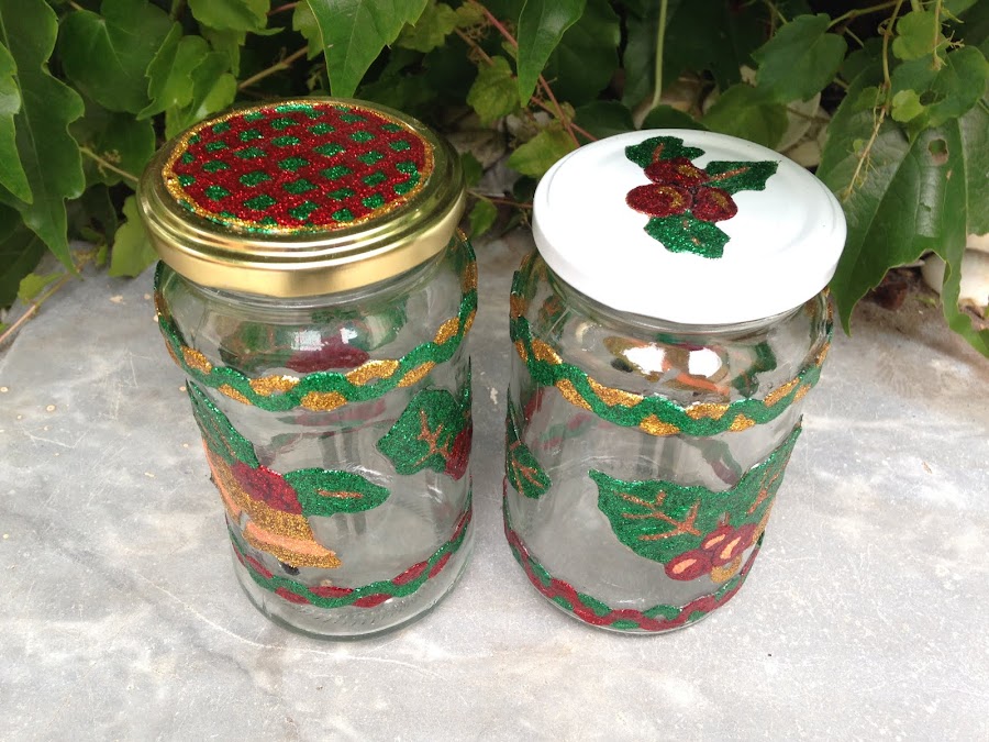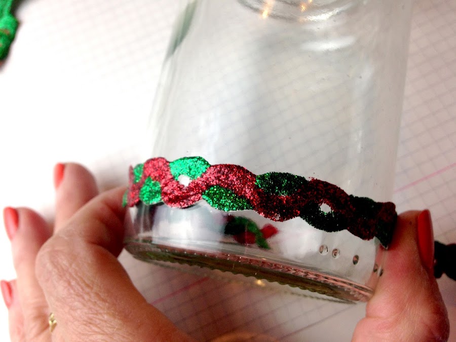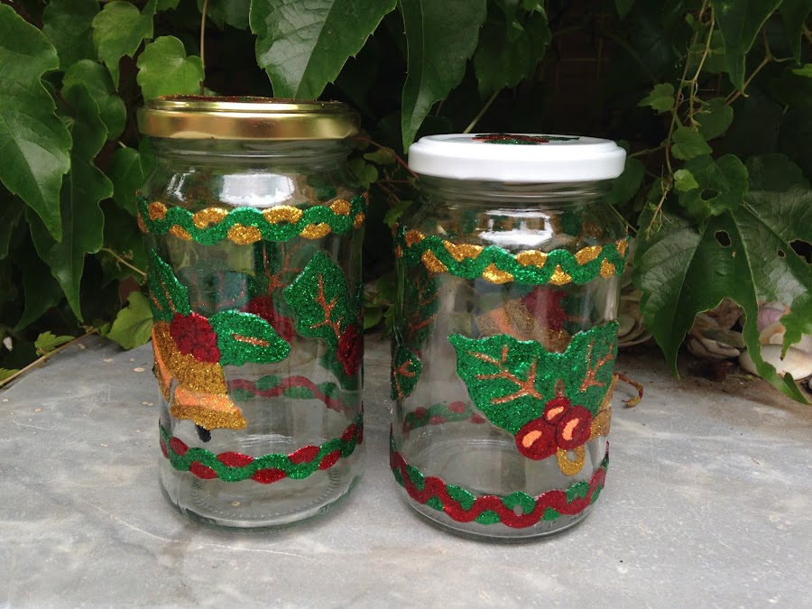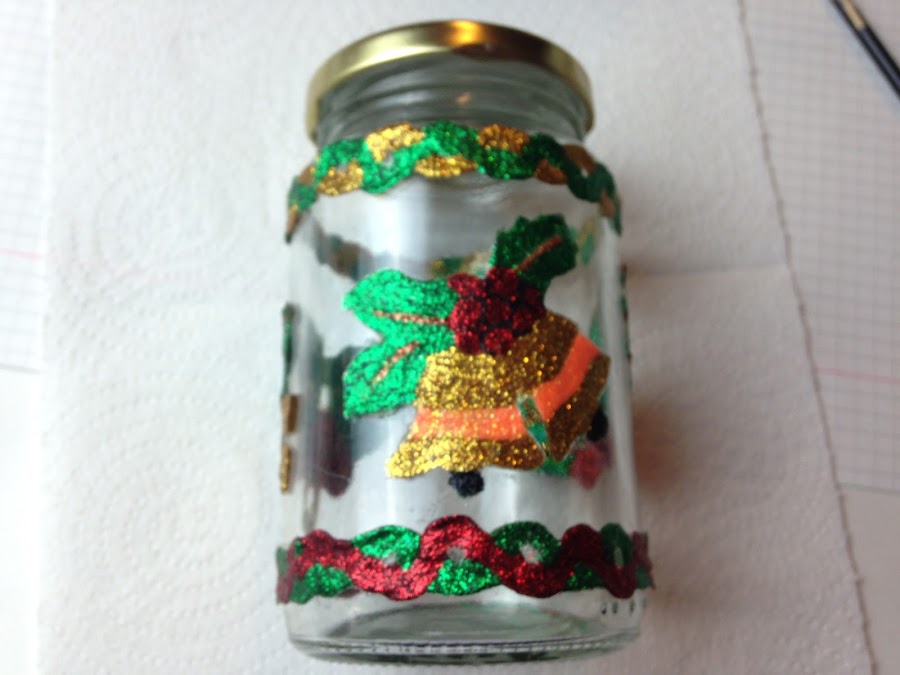 Después de pegar todo, si queremos lavar el frasco será necesario aplicarle a todas las figuras una mano de barniz acrílico o laca y así asegurarnos que podemos usarlo y lavarlo sin problemas.