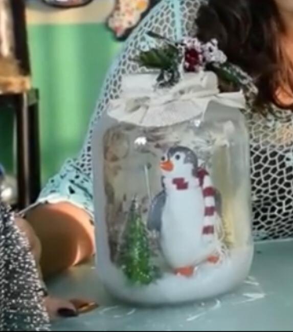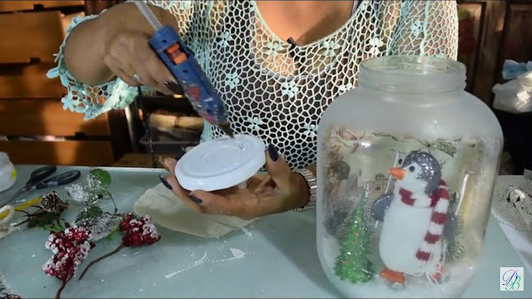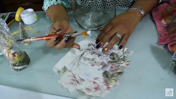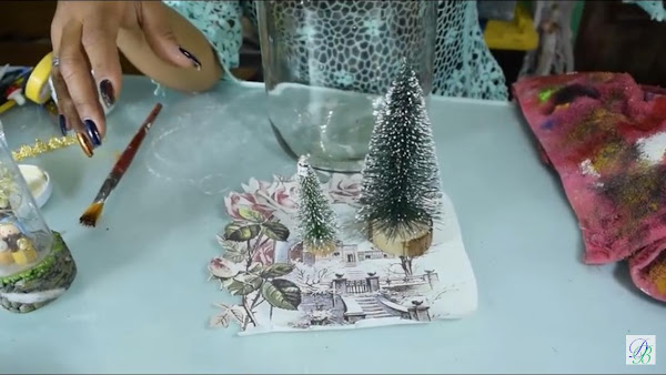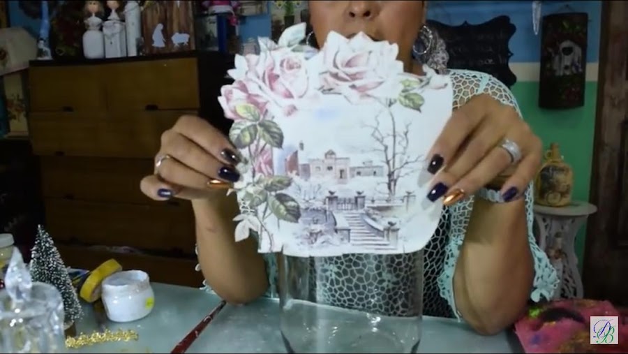 FRASCO NAVIDEÑO CON DECOUPAGE INVERTIDO