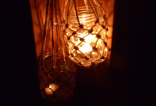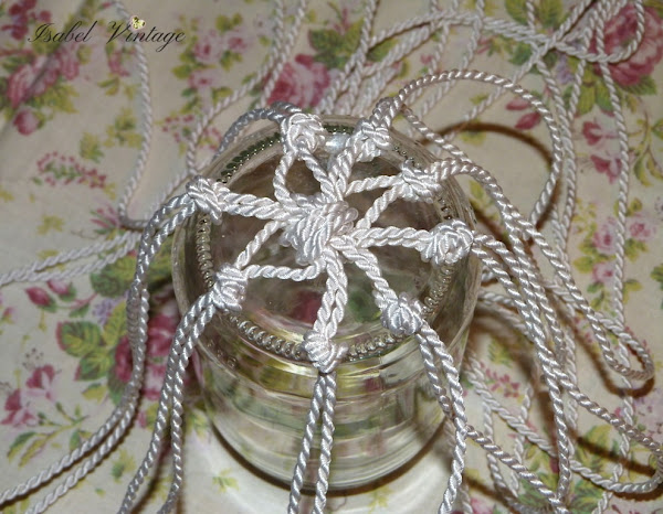 Para las que no hayáis hecho nunca estas redes con macramé para colgar recipientes, voy a explicaros con imágenes el paso a paso que yo he seguido. Es muy sencillo y creo que se va a entender bien de esta forma. He utilizado unos tarros de boca ancha que serán unos portavelas colgantes perfectos.