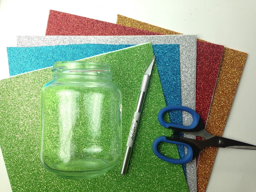 Sacar el papel de atrás de los círculos y pegar en el frasco directamente, presionando con los dedos. Ubicar las figuras a gusto completando todo el frasco.