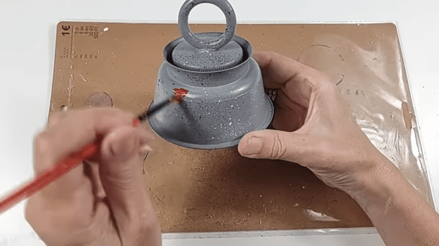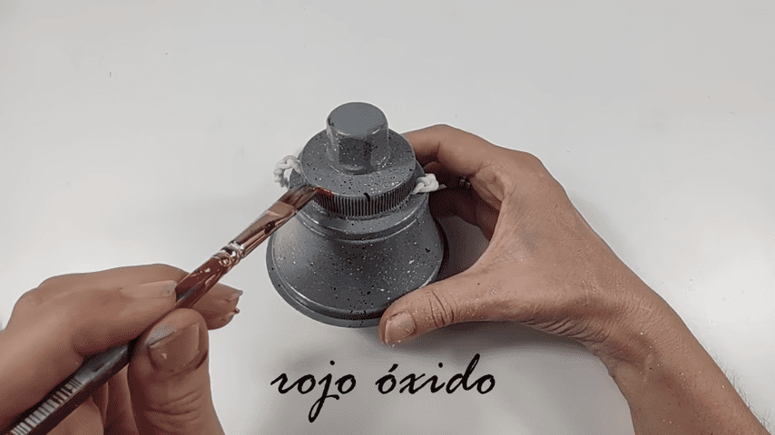 con pintura acrílica rojo óxido le voy a dar unos toques en algunos sectores para simular que está saltado y que así tenga una apariencia envejecida