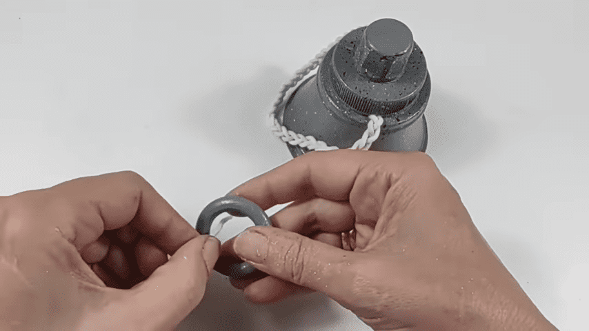 Voy a usar los elásticos de las mascarillas descartables que estoy guardando a medida que las íbamos usando mi familia con ellos quiero decorar el frasco por eso los voy a ir pegando con silicona caliente todo alrededor de la rosca de esta manera