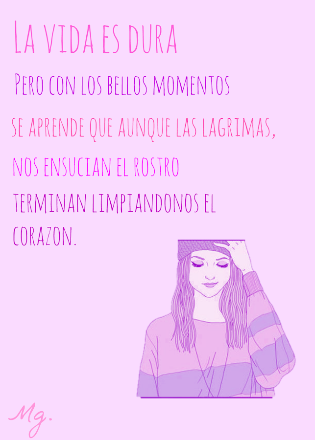 Si, la vida no es fácil pero hay cada de talle, una mirada, una palabra, una sonrisa, un hola, un adiós, todo cuesta pero a veces uno se lo hace mas complicado, tal vez yo peco de ser una persona rencorosa, una persona, que todo lo vive y todo lo