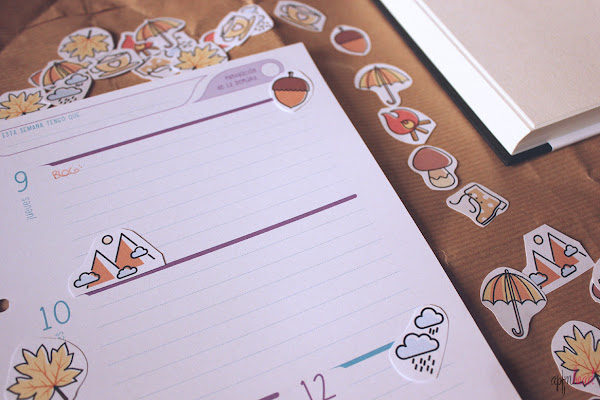 Hace unos días que llego el Otoño y a mi agenda le hace falta vestirse para esta estación llena de hojas secas y colores cálidos. He preparado unos diseños limpios, bonitos y divertidos de pegatinas para poder decorar las agendas y todo lo que queramos con ellas.