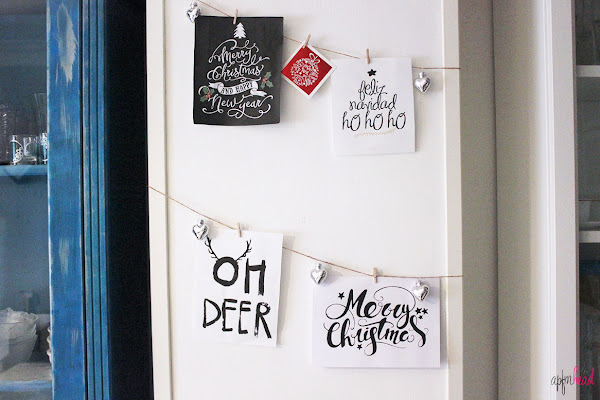 Al final la he colocado colgadita en la cuerda que tengo decorando el pilar junto a otras láminas y felicitaciones navideñas. Te gusta?