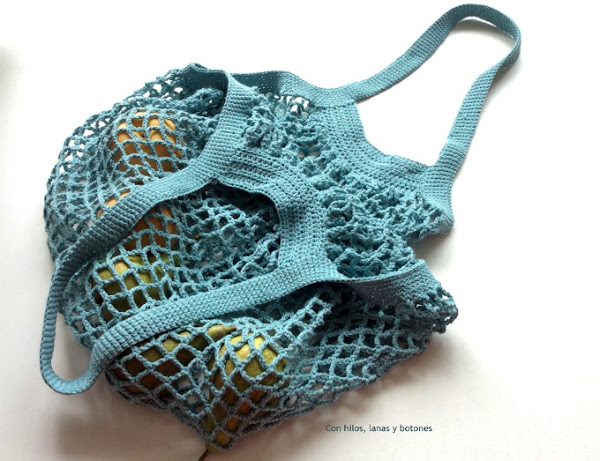 La bolsa de red azul es la que hice para Ramona, pero luego vinieron dos más que también regalé a sendas amigas. Espero que las tres disfruten de sus bolsas. A ver si la cuarta me toca a mí, jeje.