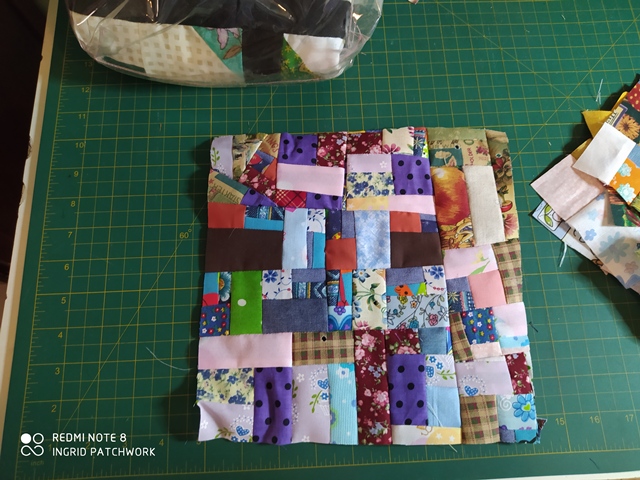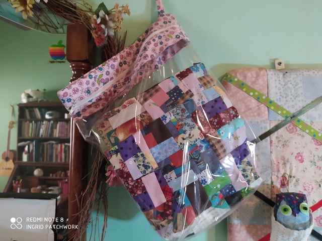 Apenas llevo uno hecho. Y todo lo estoy recolectando en esta bolsita. El quilt, los bloques y otras cositas relacionadas con este proyecto....