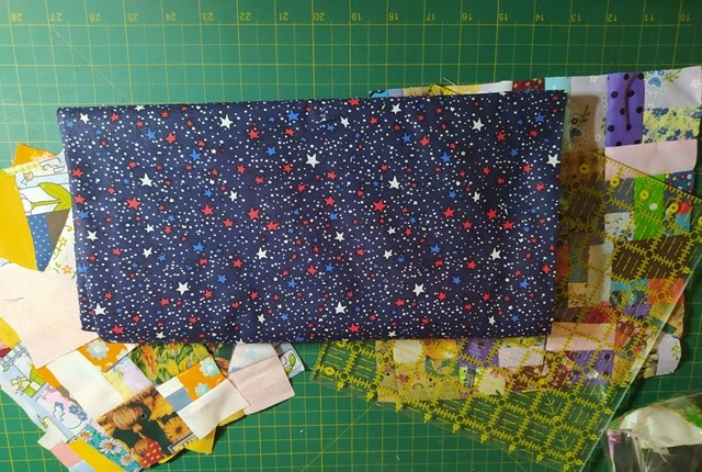 El tema es que anoche correspondía coser con amigas. La iniciativa de Cheryl, del blog Gone Stitching que he seguido varias veces ya y anoche me dediqué un poquito a adelantar las costuras para hacer unos bloques que espero colocar en la parte de atrás del quilt, porque es que Cecilia nos ha invitado a hacer un ejercicio de creatividad para el backing del quilt.