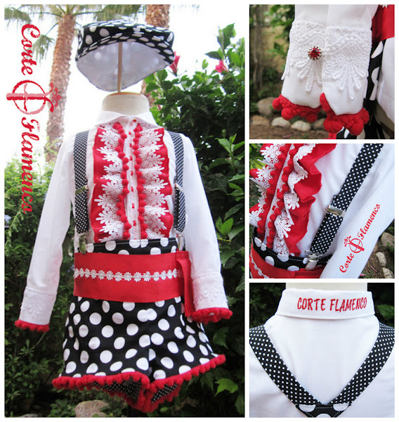 Según ella nos cuenta en su blog, todo empezó en un día de "caló andaluz" con 35º a la sombra, en el que andaba bregando con su retoño intentando probarle un traje de corto que le estaba haciendo. Ante la negativa del pequeño y las sabias palabras de su madre decidió que aquello era mejor dejarlo pues parecía una batalla perdida. Pero... en una mente creativa nunca hay sitio para un NO como respuesta, así que tras una noche de diseños mentales por fin en la mañana vio la luz, literalmente, pues nació el traje de flamenco para niños reinventado, nació "Corte Flamenco".