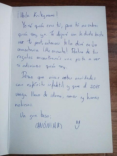 Jajajajaj, entre tanto paquetito, tan bien decorados y el misterio que le puso mi amiga en todo, mi hija y yo alucinando estabamos!!!, hacía tiempo que no nos veíamos las 2 con tanta ilusión, como 2 niñas pequeñas en el día de reyes...jejejej
