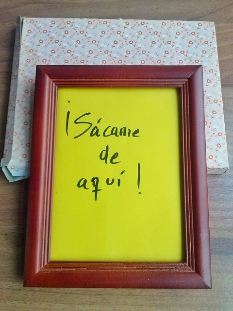 Y este fue el último que abrí, como lo abrí del revés, pensé que era un cuadro o algo artesanal hecho por mi Frikyamiga, pero cuando le día la vuelta y leí lo siguiente, nos miramos y nos echamos a reír, jajajajaj que divertido!!! Tenía que abrir el cuadro para descubrir el misterio!!! Se lo curro pero que mucho, mucho!!!
