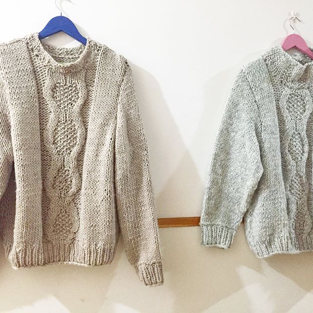 Estos dos son también con lanas de we are knitters y son preciosas, hice el gris para mi y nos gustó tanto que hice otro en beige igual para mi marido. Así vamos a juego, pero comenzó el calor y el no pudo estrenarlo, ya sacaremos alguna foto juntos con el.