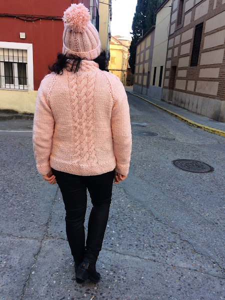 Este jersey esta tejido con lanas Rubí y es una pasada, es una lana fina, pero que abriga mucho y el patrón que elegí para hacer creo que es ideal, sienta genial y es perfecto para los días de más frío. Además me sobró una madeja y me hice a juego mi gorro con pompon.