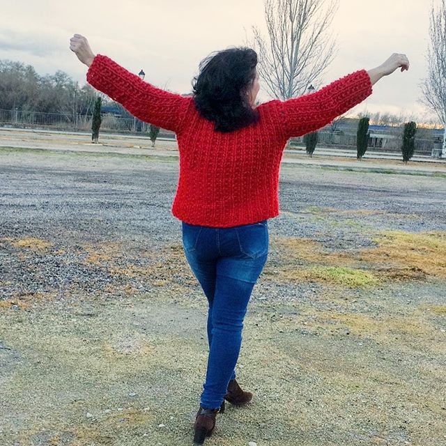 Otro que tejí con lana gruesa de we are knitters y un patrón fácil y rápido fue este en color rojo que es lo más.