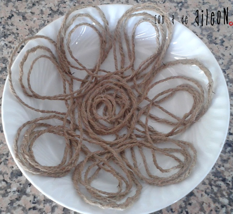 Una vez esté bien remojada, basta con empezar por el centro del globo y hacer la forma deseada (lo mejor es dejarse llevar por lo que vaya saliendo). Yo hice una base en espiral de unos 6 cm y despues ya opté por hacerlo como en forma de flor.