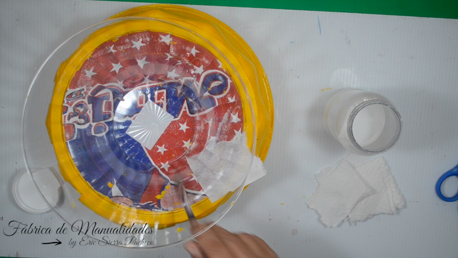 16. Pe pegamos más servilletas de papel por fuera, asi como muestro en la imagen.