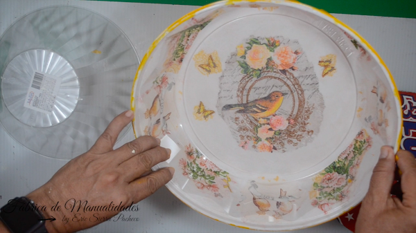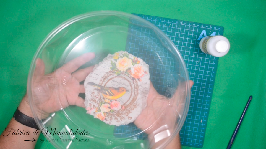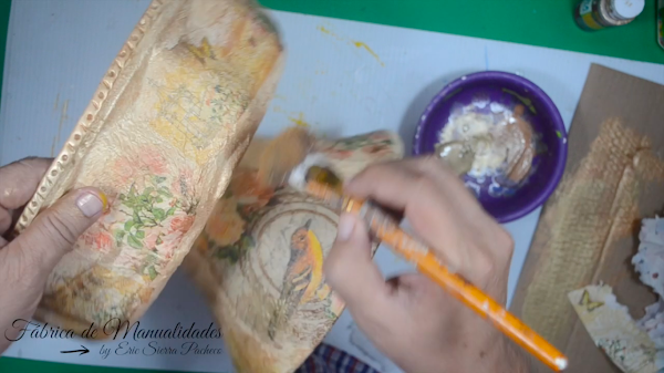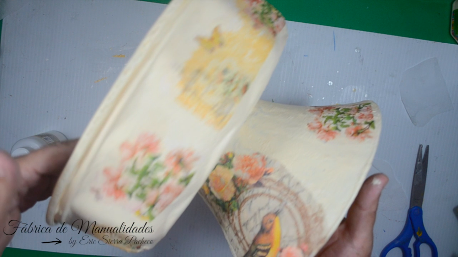 4. Usamos servilletas para hacer decoupage en el exterior del la pieza y vamos a acomodarlos como nos guste, no olviden desgarrar la servilleta para un mejor pegado.