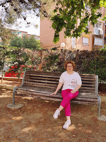 El largo del pantalon es tobillero , queda mejor para la epoca de calor y aqui sentada a la sombre me despido de vosotras hasta la siguiente costura,
