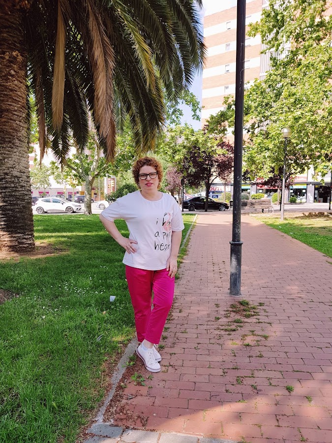 Tenia ganas de unos pantalones de color rosa pastel y cuando fui a la tienda a comprar la tela , me enamora de este color fucsia tan llamativo.