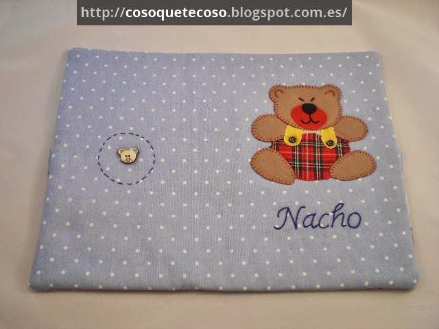 Y aquí abierta por la parte posterior. El nombre bordado a punto de tallo me encanta como queda.