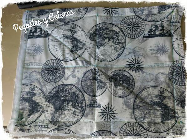Honestamente, crei que no iba a participar, no se me ocurria nada para hacer de momento con mapas ademas de andar con mucho trabajo, cuando en la seccion de telas del super, me tope con un retal hermoso con mapas. Se me hizo de lo mas bonito y me puso a trabajar de inmediato en mi funda