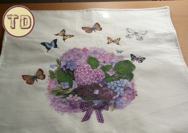 Me resultó impresionante esta información, como todo lo que no se conoce aunque ocurra a nuestro lado. Por eso no dudé ni un momento en prestar mi colaboración, enviando una funda de cojín decorada con decoupage de flores y mariposas. ¡Además es un trabajo que hago con mucha frecuencia y me encanta!.