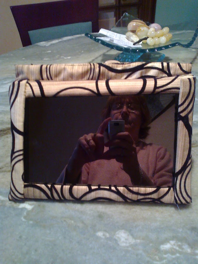 la base del fondo de la funda la he forrado también por encima, como se ve en la fotografía y después por último, he envuelto la tapa y la he cosido al lomo de la funda, Ahora me falta poner unos cuadraditos de velcro en las puntas del marco y la tapa, porque me acabo de dar cuenta que en negro no tengo ufffff.