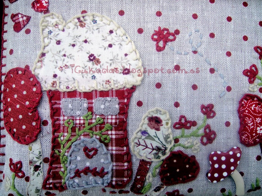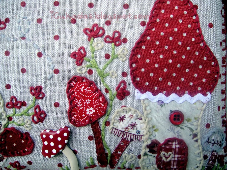 En general usé técnicas de patchwork, entretela termoadhesiva y todos los dibujos recortados y cosidos en diferentes telas, pero también bordé algunas florecillas y pequeños detalles.