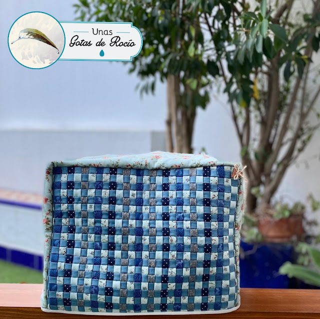 Y aquí os enseño un par de fotos de la funda ya colocada en su máquina, junto al costurero de mi hermana, el de toda la vida, el que llevó al colegio a las clases de labores