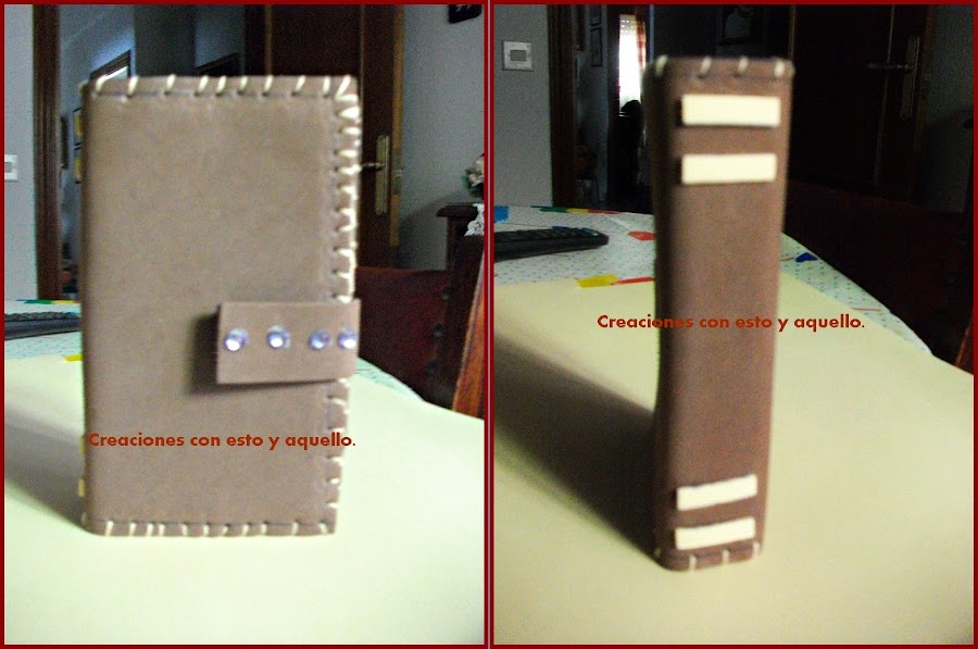 Otra vez lo intento y ha salido ésta que ya me deja mas conforme.Queria que tuviese forma de libro, con un bolsillo interior para anotaciones cuando debo tomarlas y no salir corriendo a buscar el papel y también cabe mi lápiz digital . Me hace más fácil wasapear.