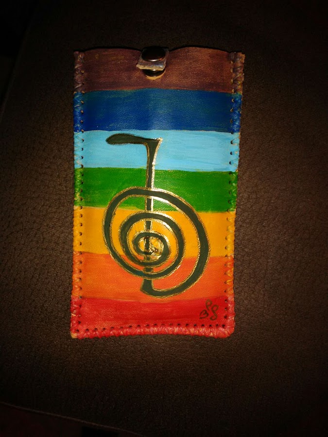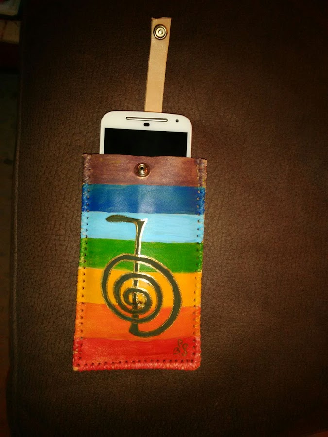 Funda móvil en piel pintada con acrílicos.