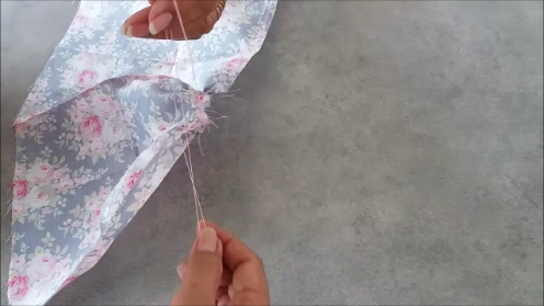 Lo coseremos así porque le vamos a hacer un pasador para la cinta (con la misma tela).