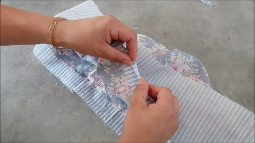 Luego que hayamos cosido ambas telas, al sobrante le haremos un pequeño dobladillo