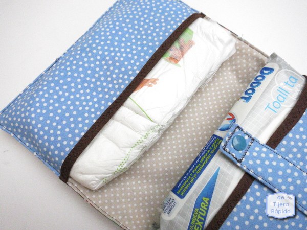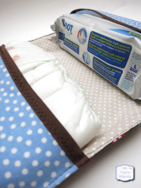 Hoy cambio un poco el registro, bien podría enseñaros una mochila para la guardería, que estos días no las paro de coser, pero he preferido publicar una funda para pañales y toallitas que he hecho hace poco para un madre repetidora, Victoria, la mamá de Eric y Darío cuyas bolsas se que os encantan, porque no dejo de recibir emails pidiéndome una igual.