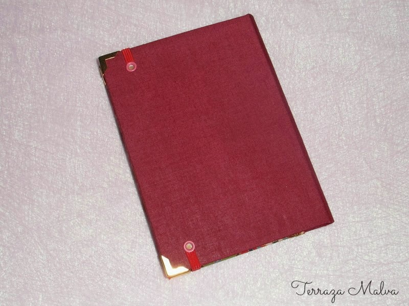 La funda está realizada en cartón contracolado forrado con telas que es lo suficientemente fuerte como para proteger la agenda. Lleva una cinta elástica que sujeta las tapas para que no se abran dentro de la mochila y unas esquineras metálicas para proteger la zona que más sufre con el uso.