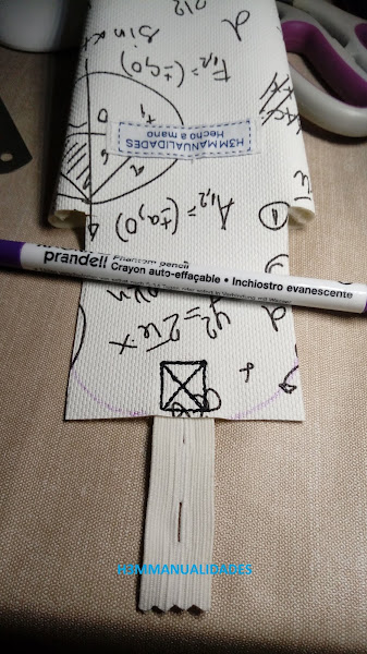 Está hecha de una sola pieza, doblada por abajo y haciendo la solapa para el cierre. Lo cual hizo que, al no fijarme bien, por la parte de delante el motivo matemático quedara del revés... en fin...
