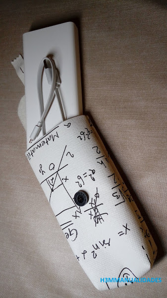 Hoy traigo una sencilla funda de polipiel para una batería externa grandecita. Me la pidió mi hijo, ¡y no veas la ilusión que me hizo que lo hiciera! Me dijo que dejaba a mi elección la forma y sistema de cierre. La tela sí la eligió él porque ya lleva tiempo por casa y ya la he usado en algún estuche y carpeta más grande.