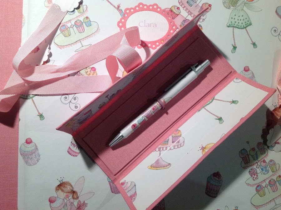 Funda para bolígrafo realizada a juego del álbum de fotos y libro de firmas de primera comunión