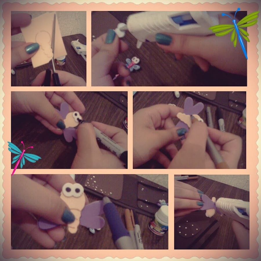 Transferí el molde de los ojos y las alitas de mi libélula y los pegue