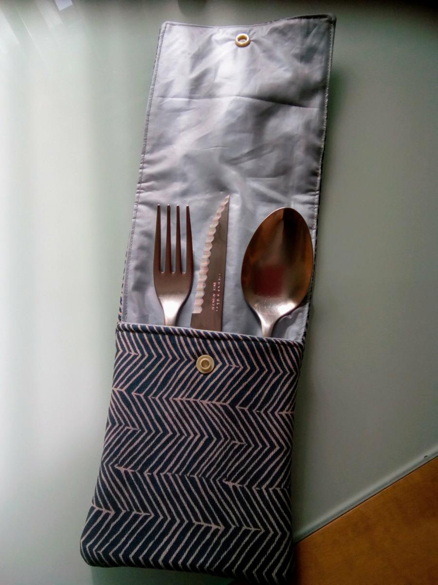 Doblamos la solapa y medimos 22cm. asegurándonos de que esta medida es suficiente para nuestros cubiertos.