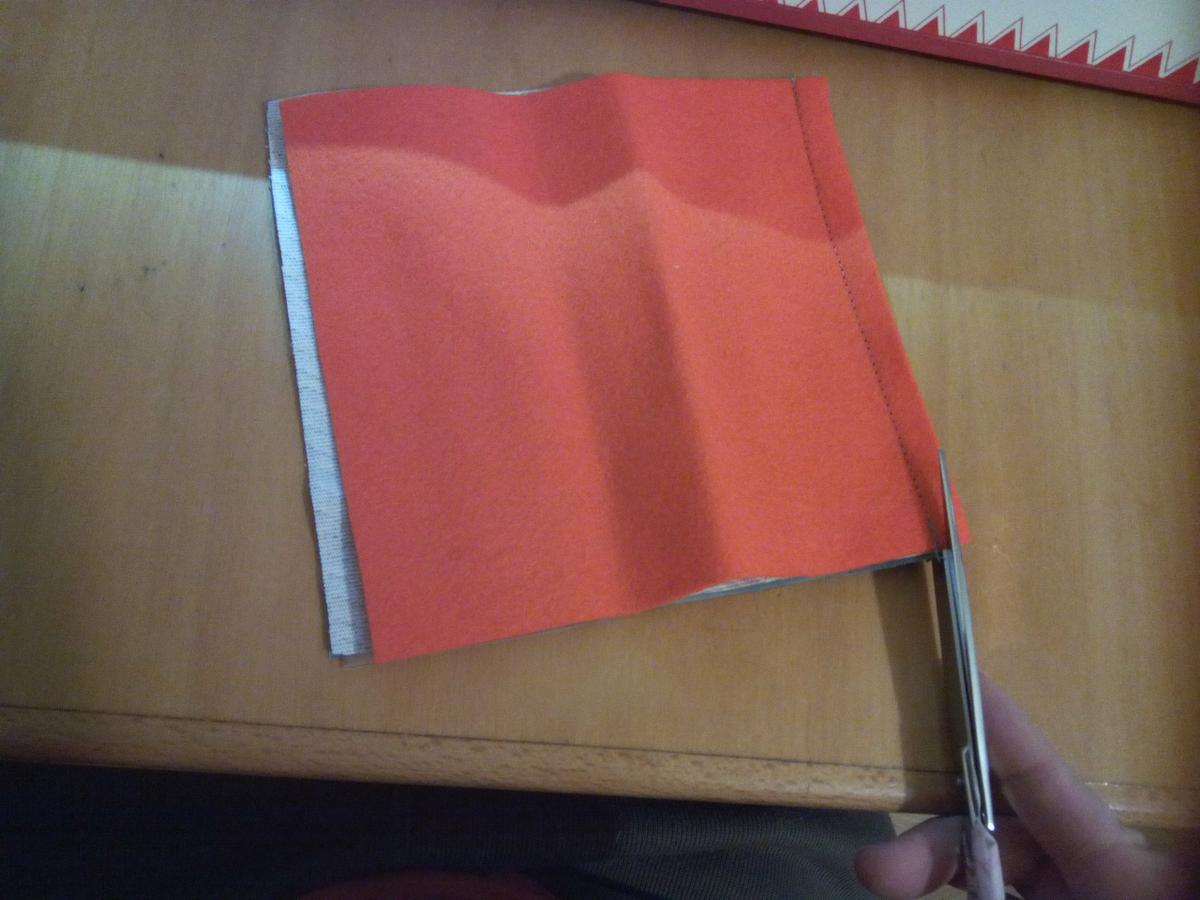 Recortamos el exceso de fieltro del márgen de costura y volvemos del derecho.