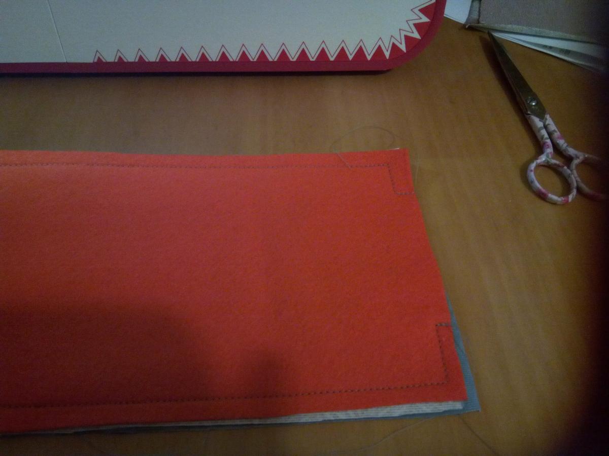Pasamos un pespunte a la parte superior del rectángulo, que es la que mide 14cm.