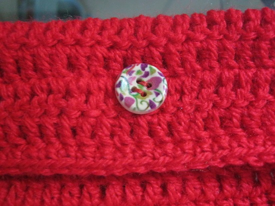 Por último, le cosí un bonito botón con dibujos florales para poder cerrarla