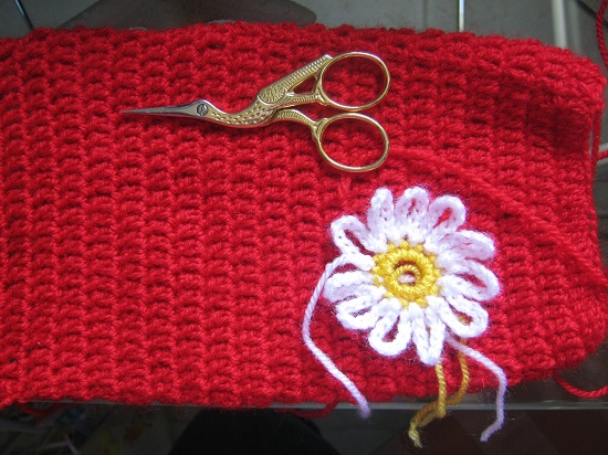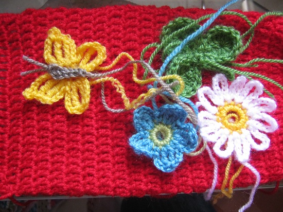 una vez cosidas todas las flores y la mariposa,