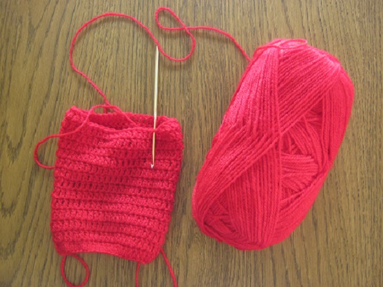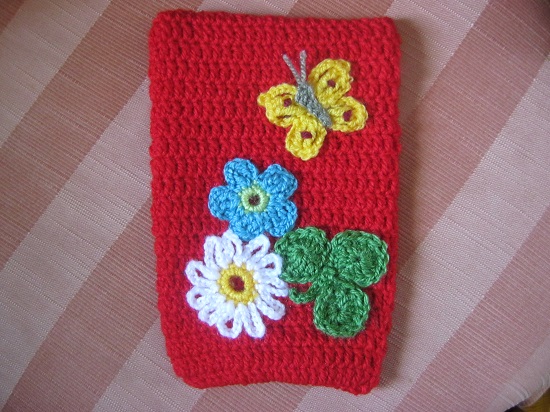 Pues bien, una amiga en el trabajo la vio y me pidió por favor, por favor, por favor, que le hiciera una para su libro electrónico que lleva a todas partes. Pero ella la quería roja, que era el color favorito de su madre. Yo a estas alturas ya he asumido que me encanta hacer cosas para regalar, y aunque después de las mantas que hice para mis hermanas me prometí que lo siguiente sería para mí, no dudé en dejarlo a un lado para ponerme a tejer la funda de Anto.