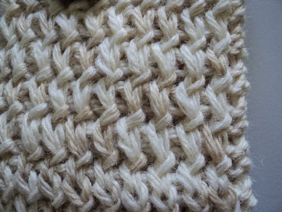 Es un punto fácil de tejer y que queda tupido con lo que es muy apropiado para hacer fundas de móvil, tablet, bolsos, monederos...