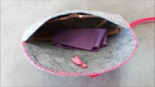 Y cosemos los extremos y la solapa con una puntada decorativa, yo le he hecho una puntada de ojal que básicamente es un sobrehilado pero pasando la aguja por el arco que forma el hilo antes de terminar de estirarlo